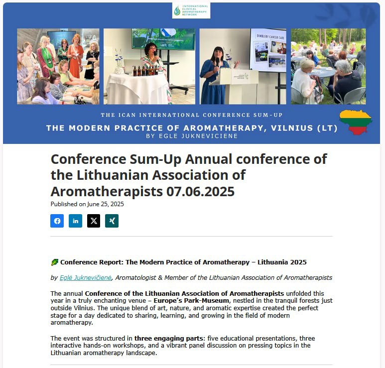 ICAN (International Clinical Aromatherapy Network) - tarptautinė klinikinės aromaterapijos platforma – publikavo straipsnį apie įvykusią Lietuvos aromaterapeutų asociacijos metinę konferenciją.