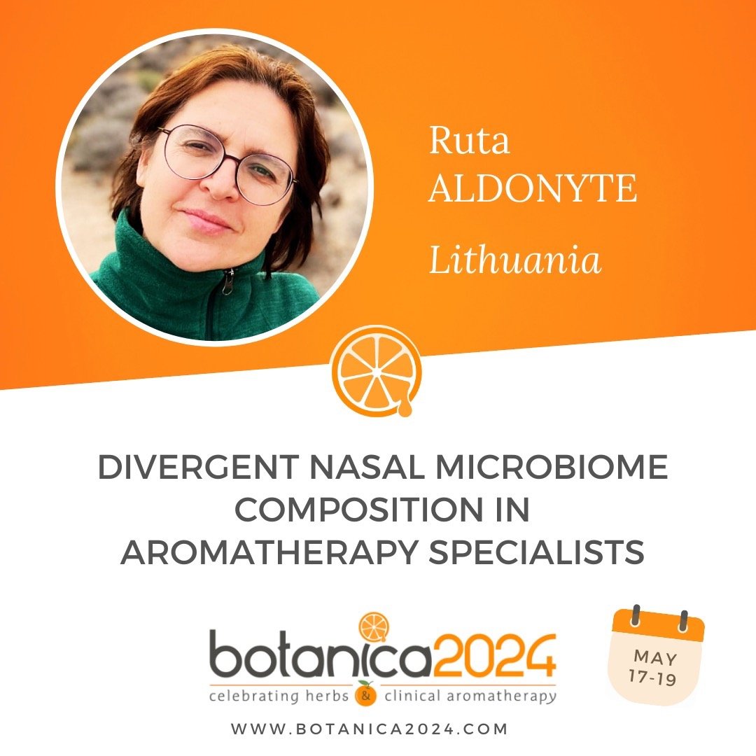 Lietuvos aromaterapeutų asociacijos Vadovė Dr. Rūta Aldonytė pristato pranešimą prestižinėje aromaterapeutų konferencijoje Botanica 2024.