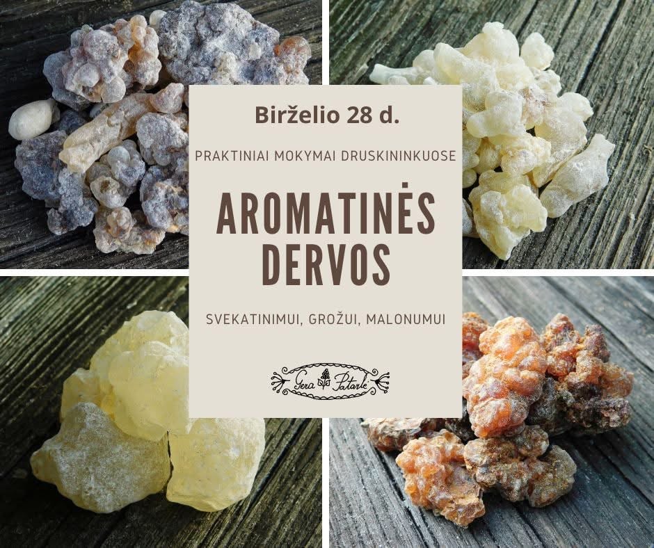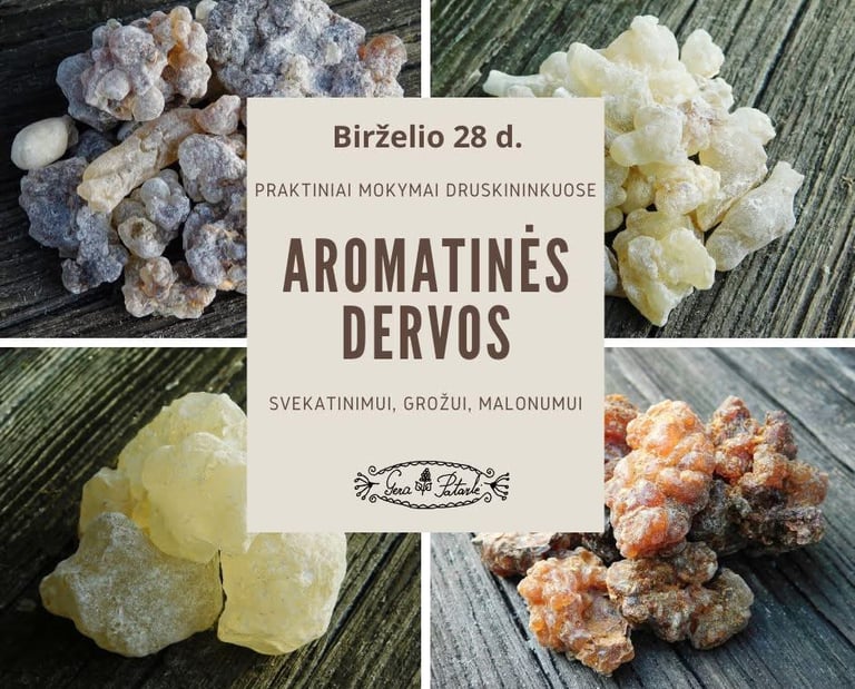 Rugpjūčio 10 d. kviečiame į praktinius, išskirtinai informacinius ir įdomius praktinius mokymus “Aromatinės dervos“ Druskininkuose.
