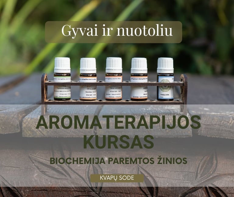 Šis kursas suteikia galimybę susipažinti su eterinių aliejų biochemija bei jų saugaus naudojimo praktika. Mokymuose bus nagrinėjami eterinių aliejų išgavimo būdai, jų cheminė sudėtis ir poveikis. Kurso metu taip pat sužinosite, kaip įvertinti eterinių aliejų kokybę, paruošti individualius gydomuosius mišinius bei taikyti juos vaikams, suaugusiems ir senyvo amžiaus žmonėms, saugiai juos naudoti kasdienėje praktikoje.