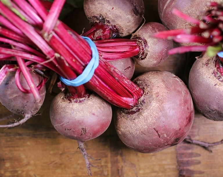 Įkaitinkite orkaitę iki 180ºC. Burokėlius supjaustykite smulkiau nei saldžiąsias bulves, nes jie paprastai ilgiau kepa. Sudėkite supjaustytą griežinėliais svogūną, pagardinkite druska, pipirais, sumaišykite su alyvuogių aliejumi. Kai tik daržovės iškeps, išimkite jas iš orkaitės ir supilkite hidrolatą.